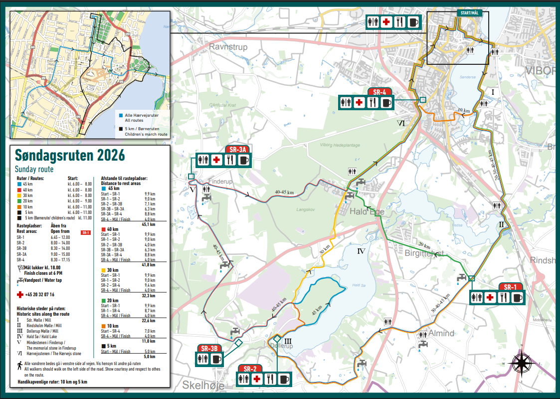 The routes of the HAERVEJSMARCH are carefully planned in the area in and around Viborg. On Saturday, all routes go north and east of Viborg, and on Sunday south and west of Viborg. This means that everyone who hikes the two-day march experiences two unique routes, and no one gets to walk the same route two days in a row.