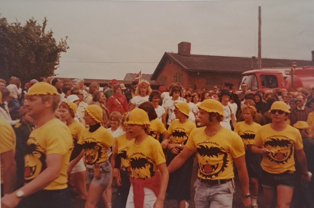 havde smedemester Røn som sponsor, gule trøjer med et løvehoved, og hvor der stod "Vi er brølende gode" samt gule hækkene huer, som min hustru Karen havde hæklet.